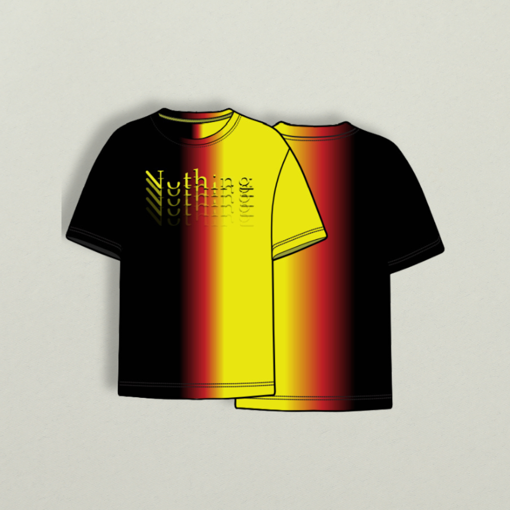 - Description: Step into the spotlight with the Radiant Divide Tee. This bold design features a seamless gradient from black to yellow, giving it an eye-catching, edgy look. The graphic text overlay, "Nothing but next," adds a touch of inspiration for those who dare to stand out.